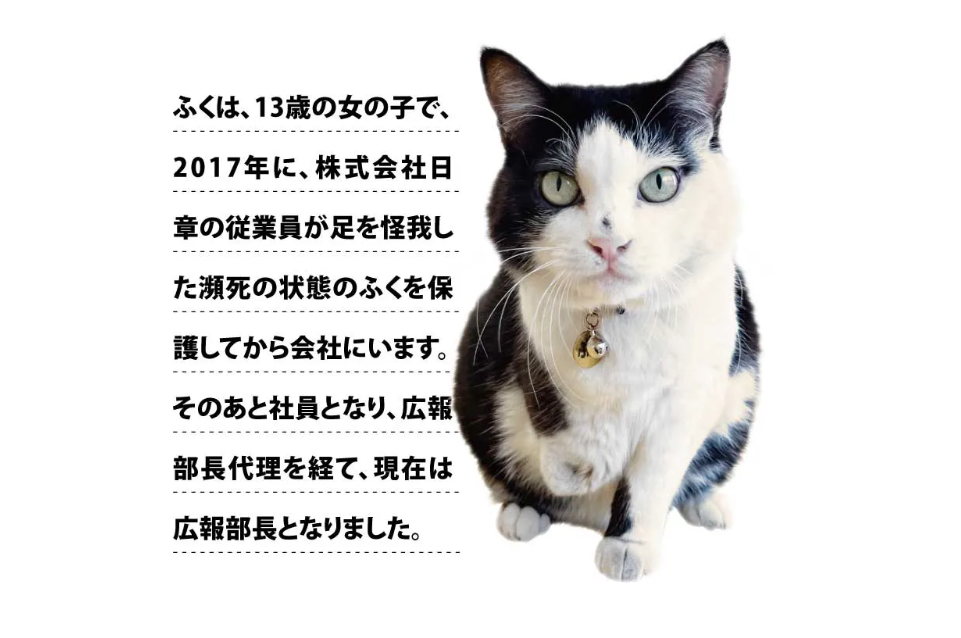石川県の南西部、川北町にある運送会社「株式会社日章」の事務所には、一匹の猫が勤務しています。その名は「広報部ふく部長」。